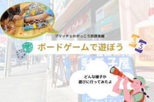 こんにちはプリッチェです! 梅雨入り・・・まだなんですね。 もう夏が来てしまったような暑い日でしたが この春から始まった「プリッチェのがっこう放課後編」 月に1度の『ボードゲーム』の日に遊びに行ってきました。 駄菓子屋プ … 続きを読む プリッチェのがっこう放課後編『ボードゲームの時間』に潜入!!